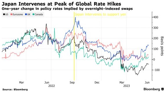 分析师认为,即使日本央行不采取措施使其政策正常化,随着全球紧缩周期的结束,日元也会恢复一些强势。主要央行在未来12个月的预期加息幅度远低于去年干预期间的水平。