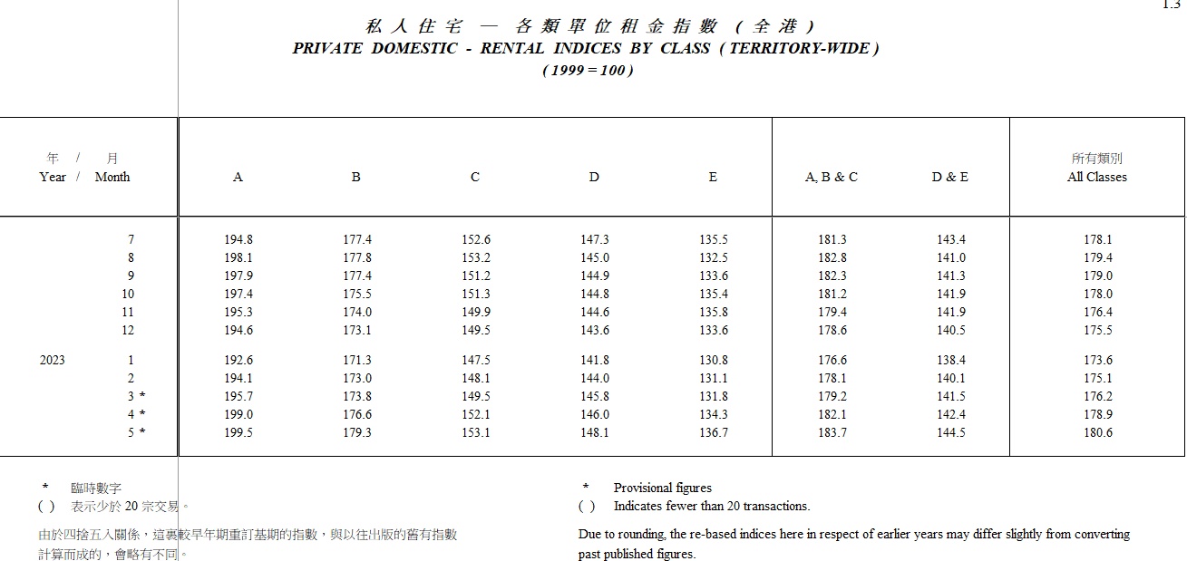 租金指数方面,该指数连升4个月,为去年1月以来最高,5月私人住宅租金指数报180.6点,环比升近1%,同比升1.5%。今年首5个月升近3%。
