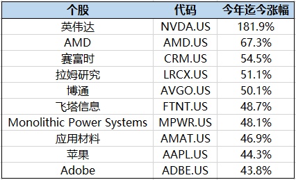 智通财经APP获悉,标普信息科技板块是今年以来表现最强劲的板块,迄今已累计上涨37%,在人工智能热潮的引领下成为市场上最耀眼的明星。以下是标普信息科技板块中今年以来表现最好的十只股票。