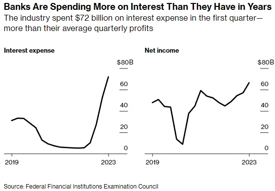 在第一季度,由于美联储加息推高了贷款收入,而资金成本的大幅增加才刚刚开始显现,银行业的净收入仍在增长。