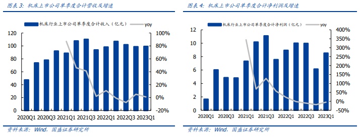 今年以来,尽管疫情影响已告一段落,但制造业的复苏进程仍然一波三折。以制造业的“工业母机”机床行业为观察对象,据国盛证券分析师的统计,23Q1期间A股18家机床行业上市公司的收入增速依然徘徊在0附近,而净利润虽环比上一季度有较大改善,但同比口径增速依然为负。