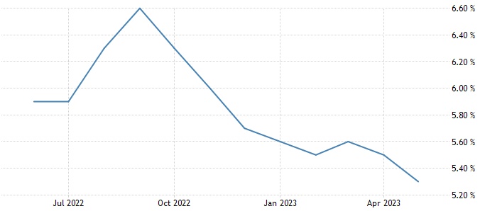 自去年夏天达到40年高点以来,整体通胀年率已经下降了一半至4%,但仍远高于美联储在开始收紧货币政策时希望看到的2%的水平。美联储本月暂停了加息,但预计将在7月份再次加息。一些投资者认为,通胀放缓加上经济增长强劲,是有利于资产价格的所谓“金发姑娘”局面。然而,美国核心通胀率仍非常强劲,徘徊在5%以上,显示出一定的粘性。