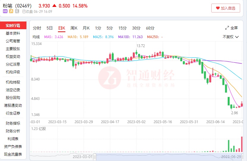 二级市场方面,截至6月29日收盘,粉笔上涨14.58%,报3.93港元/股。