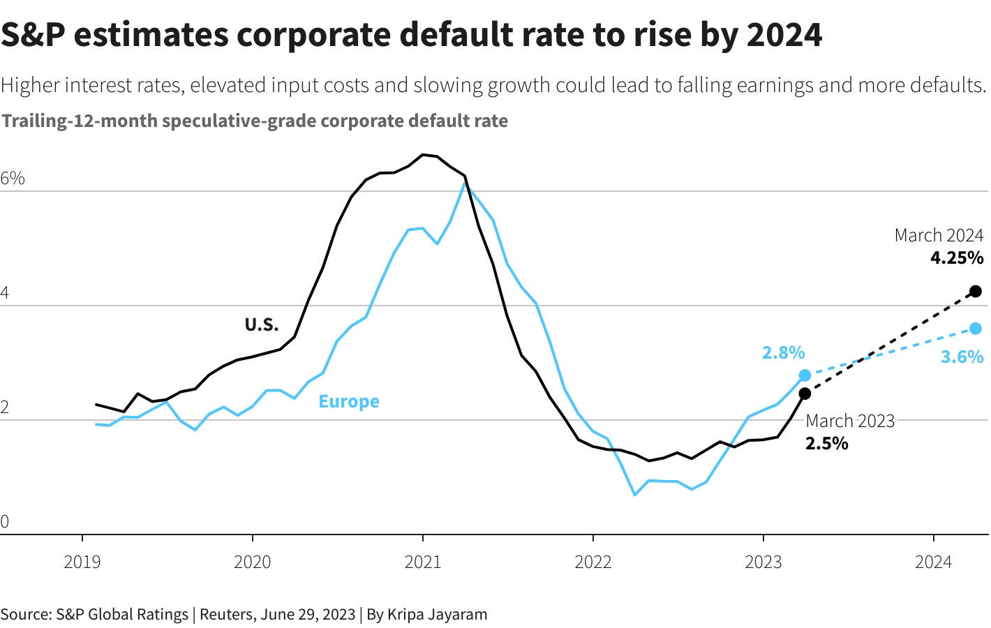 标普预计,到2024年3月,欧洲次级投资级公司的违约率将从今年3月的2.8%升至3.6%。