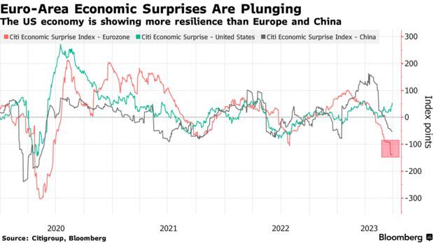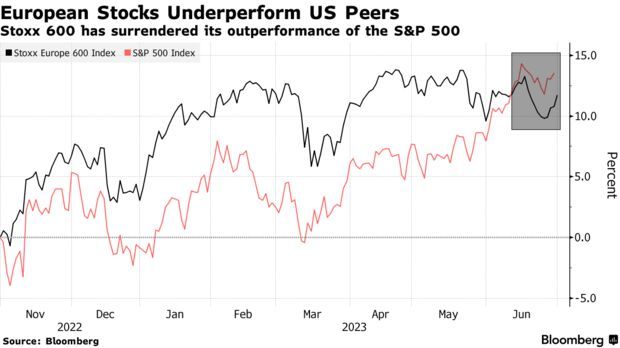 欧洲地区股市表现不佳,在一定程度上反映出投资者越来越青睐成长股和大型科技股,这类股票在美国股市的权重要大得多。此外,在投资者对全球经济增长放缓的担忧之中,美国经济所表现出来的韧性可能也起到了一定作用。