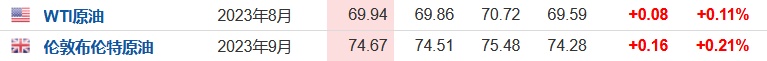 3.截至发稿,WTI原油涨0.11%,报69.94美元/桶。布伦特原油涨0.21%,报74.67美元/桶。