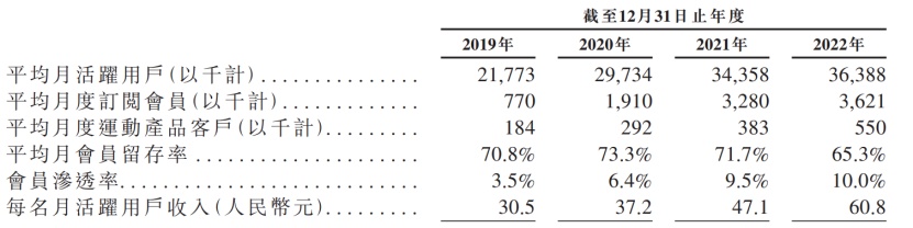 相较传统健身行业而言,Keep最大的优势是以线上内容为切入所形成的庞大用户流量群体,以充分挖掘单客户价值,这点已经在公司高成长的数据中得到验证:过去三年,Keep平均月度活跃用户与平均月度订阅会员数持续增长,在2022年达到了3639万、362万会员。同时,Keep用户粘性也维持着不错的水准。Keep平台的会员渗透率在2022年达到了10%,远高于同年中国行业5.8%的平均值。