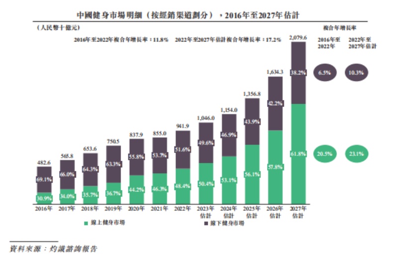 灼识咨询报告显示,2022年中国的健身人群为3.74亿,预计到2027年将达到4.63亿人,且预期未来五年,中国健身市场规模年复合增长率达到17.2%,而中国健身人群的平均支出仅为2518元,不到美国健身人群平均支出的1/5,全民健身的巨大市场有待挖掘。