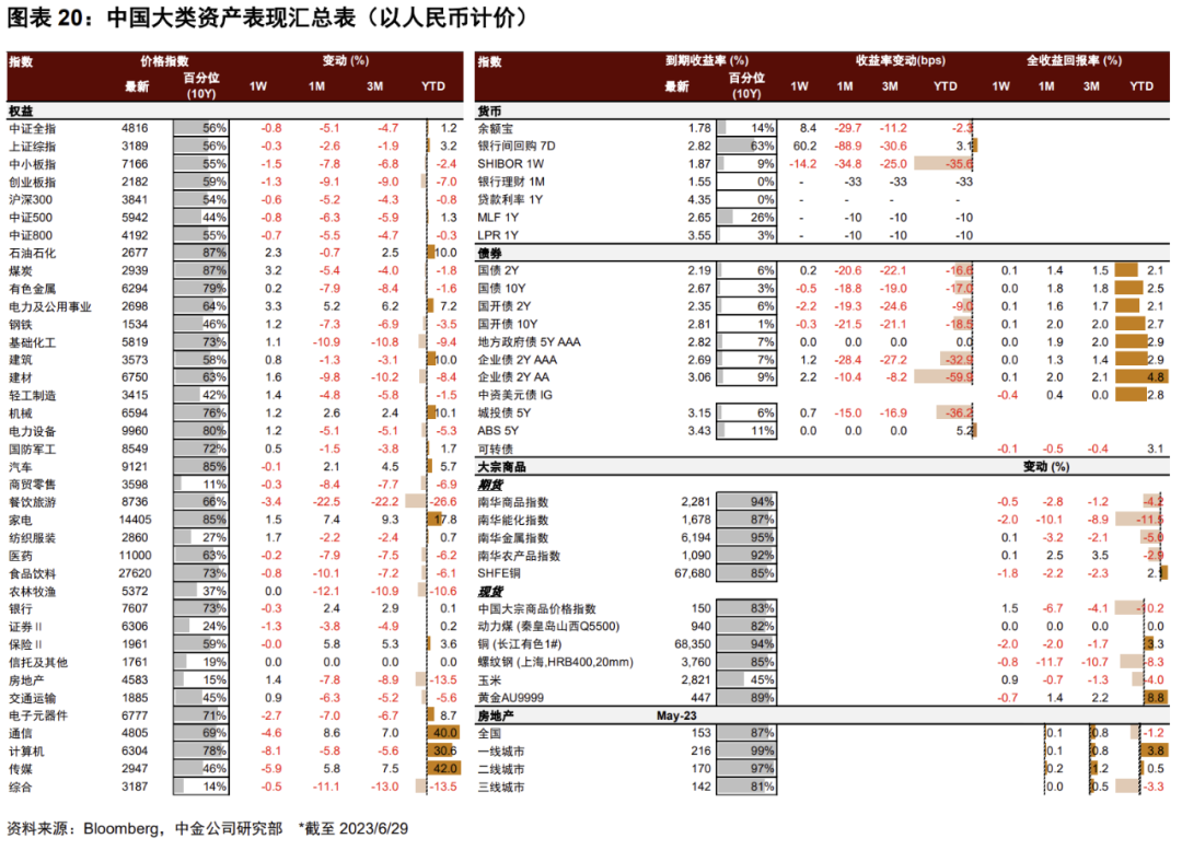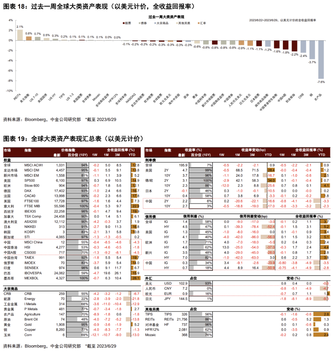 上周全球大类资产表现排序(2023/6/22~6/29)