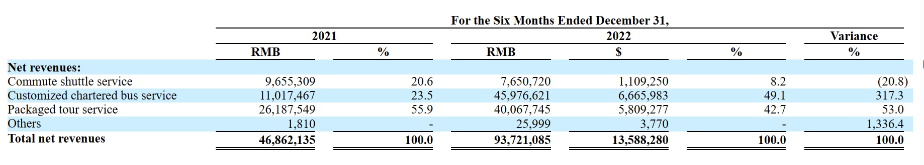 在2022年截至12月31日止的6个中,微巴士营收继续保持了增长,但各项业务分化明显。其中,通勤班车服务的收入下降了20.8%,这主要是因为两个主要客户中止了合作。定制包车、跟团旅游则继续快速增长。