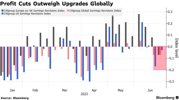 在美国地区性银行危机和人工智能热潮推动科技股反弹之后,一系列企业盈利预警和各大央行的鹰派言论削弱了人们对经济软着陆的乐观情绪。