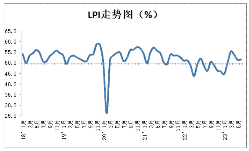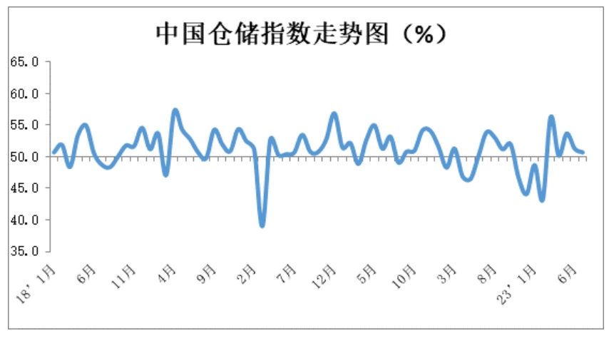 中国物流与采购联合会发布的2023年6月份中国物流业景气指数为51.7%,较上月回升0.2个百分点;中国仓储业指数为50.7%,较上月下降0.6个百分点。