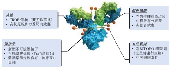 就临床进展而言,科伦博泰的SKB264定位为中国首款国产TROP2 ADC。由于SKB264使用差异化药物设计,提高了ADC稳定性并保持ADC生物活性,从而增强其靶向能力并降低其脱靶和在靶脱瘤毒性,有望可使治疗窗口扩大。