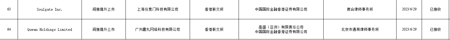 Soulgate Inc.(简称"Soul”),于2023年3月27日在港交所递交招股书,拟在香港主板IPO上市。Soul的申报类型为间接境外上市,备案申报主体为上海任意门科技有限公司,备案接收日期为2023年6月29日。中金公司为其独家保荐人,君合为其境内律师。