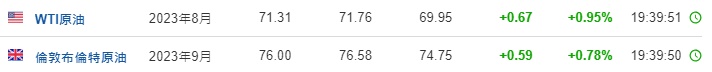 3. 截至发稿,WTI原油涨0.95%,报71.31美元/桶。布伦特原油涨0.78%,报76.00美元/桶。