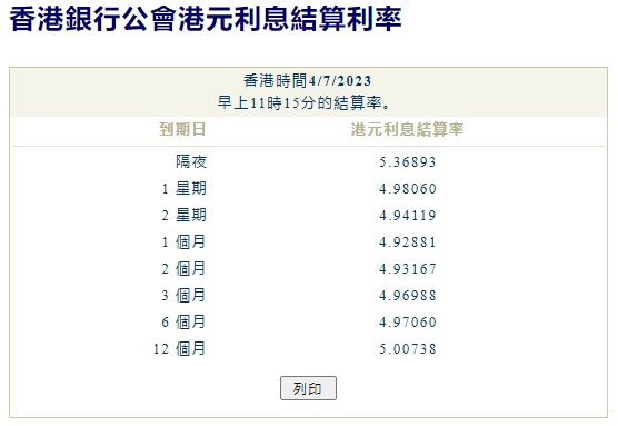 智通财经APP获悉,7月4日,港元隔夜今早涨跌不一。据香港银行公会数据,隔夜息回升27基点至5.36893%,一周期亦升至4.9806%,但与楼按相关的一个月拆息进一步降至4.92881%,创近三周新低。反映银行资成本的三个月拆息则升至4.96988%,见近一周新高。六个月期升至4.9706%,但一年期跌至5.00738%。