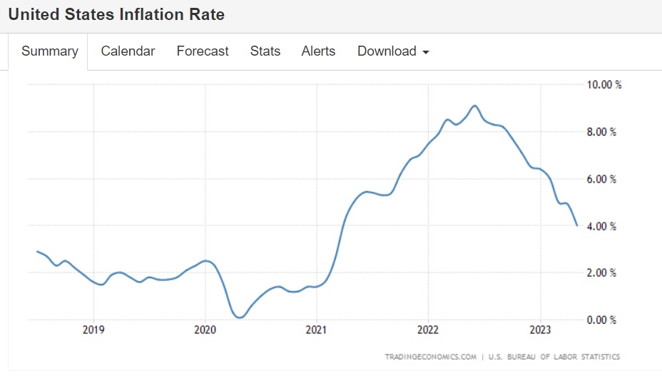 最新数据显示,美国整体通胀率已经从去年夏天的一度超过9%峰值降至今年5月的4%,降至2021年3月以来的最低水平。此外,上周五公布的美联储最青睐的通胀指标——核心个人消费支出指数(核心PCE,同比)超预期下行至4.6%,同样显示美国通胀率总体呈下行趋势。通胀大幅降温背后的其中一个关键因素是美联储自去年春季以来将利率从几乎为零上调至5%以上,期间开启一代人以来最激进的加息周期。