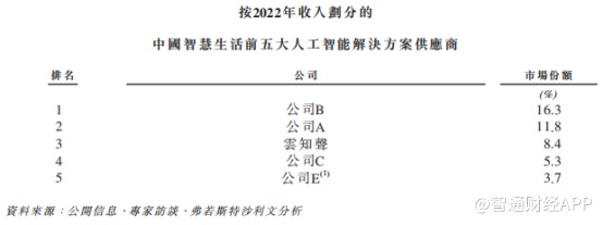 具体而言,根据弗若斯特沙利文的数据,以2022年的收入统计,公司作为智慧生活人工智能解决方案供应商的市场份额为8.4%;与此同时,公司作为智慧医院AI解决方案提供商的市场份额为6.6%,两者均位于行业前列,具备稳固领先优势。