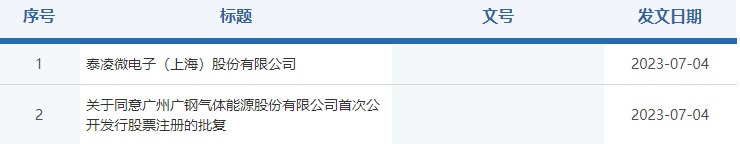 智通财经APP获悉,7月4日,中国证监会发布关于同意泰凌微电子(上海)股份有限公司、广州广钢气体能源股份有限公司首次公开发行股票注册的批复。证监会同意上述公司科创板IPO注册。