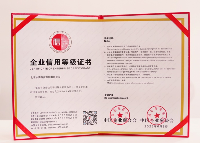 近日,中国企业联合会、中国企业家协会公布了2023年第一批企业信用评价结果,水滴公司获评“企业信用评价AAA级信用企业”。