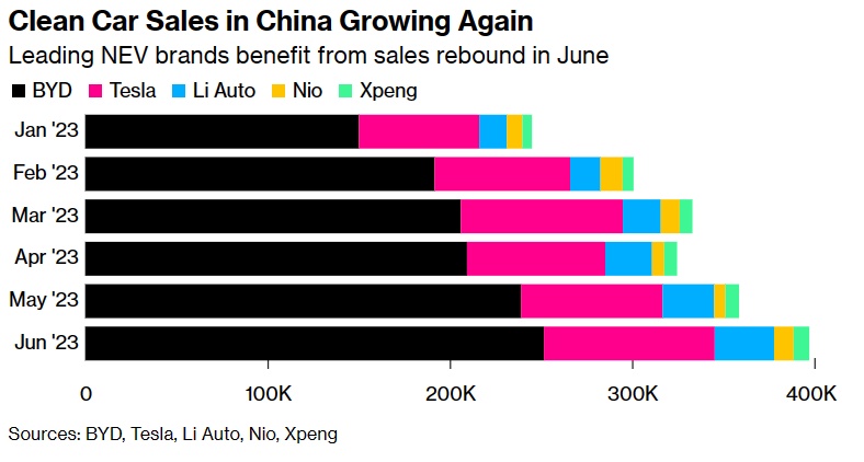 中国清洁型能源汽车销量再次增长——领先的新能源汽车(NEV)品牌受益于6月销量反弹