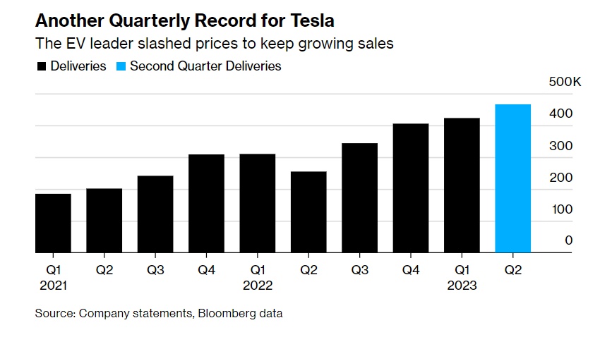 最新数据显示,在美联储高利率重压以及消费支出压力下,特斯拉第二季度交付量仍超过分析师普遍预期的44.5万辆,达到466,140辆。其中,价格较低的Model 3轿车和Model Y跨界车在本季度交付了446,915辆,市场预期为430,000辆。特斯拉公布的季度产量同样创下历史新高,高达47.97万辆,市场预期则为45.7万辆,并且产销缺口较上一季度明显收窄。