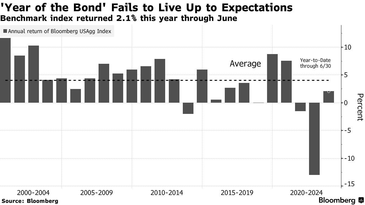“债券之年”未能达到预期——基准指数今年截至6月的涨幅仅为2.1%