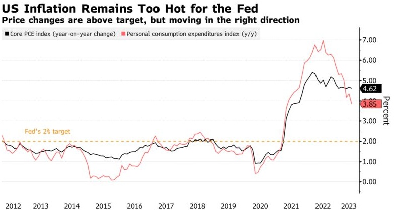 在去年以40年来最快的速度加息(包括连续4次加息75个基点)后,美联储上月的决定是紧缩步伐放缓的象征。他们从去年12月开始放慢加息速度,并在今年前三次会议上每次加息25个基点。