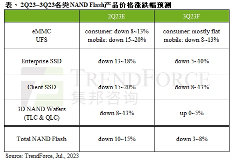 Wafer均价预估将率先上涨;SSD、eMMC、UFS等模组产品,则因下游客户拉货迟缓,价格续跌,估第三季整体NAND
