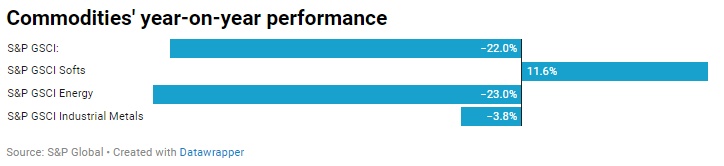 他称:“总的来说,由于企业和消费者在潜在的经济衰退之前减少了需求,许多主要大宗商品在过去几个月里大幅下跌。”