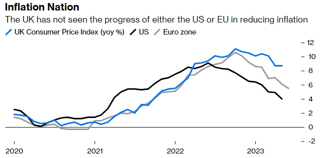 糟糕地是,高利率放大了不平等。英国国家统计局估计,在疫情期间大幅飙升后,英国目前的储蓄缓冲相当于国内生产总值10%,价值3400亿英镑(4300亿美元)。对于储蓄者和养老金领取者来说,在经历了十年的零收益后,获得接近5%的无风险收入简直是天赐良机。私营部门7%以上的工资增长也减轻了对高收入者的影响。而那些无储蓄、养老金与低收入的贫困人群只能忍受高利率带来的痛苦。