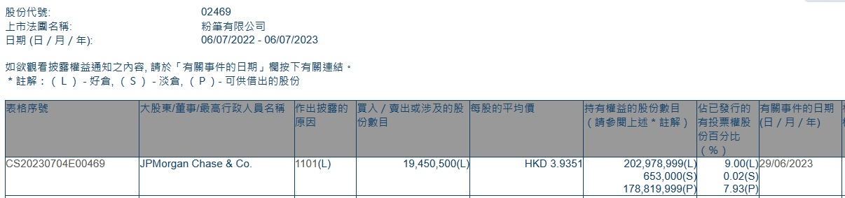 智通财经APP获悉,香港联交所最新资料显示,6月29日,小摩增持粉笔(02469)1945.05万股,每股作价3.9351港元,总金额约为7653.97万港元。增持后最新持股数目约为2.03亿股,最新持股比例为9.00%。
