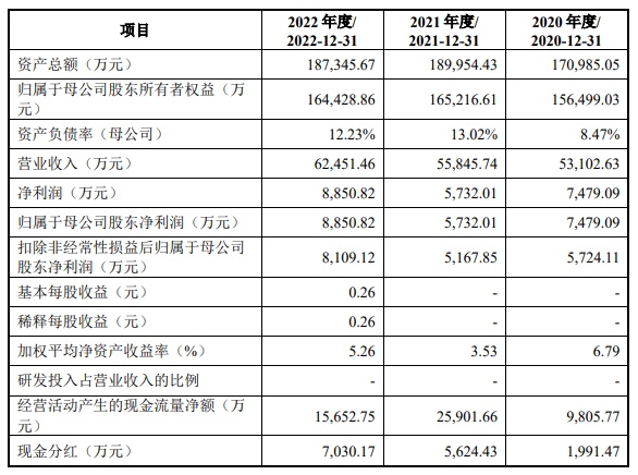 财务方面,于2020年度、2021年度及2022年度,公司实现营业收入分别约为5.31亿元、5.58亿元、6.25亿元人民币;2021 年及 2022 年分别较上一年增长 5.17%及 11.83%,呈现稳定增长的趋势。同期,净利润分别为 7479.09 万元、5732.01 万元和 8850.82 万元,盈利状况良好。