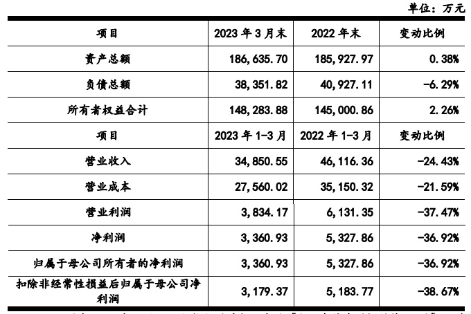 财务方面,于2022年、2023年1-3月,该公司实现营业收入为4.61亿元、3.49亿元。同期,该公司实现净利润分别为5327.86万元、3360.93万元。该公司在招股书中表示,各指标较2022年1-3月均有所下降,主要系下游自行车行业景气度有所下降。