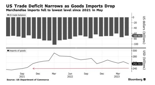 随着美国消费者减少对商品的支出,并转向服务和体验,对外国商品的需求正在放缓。进口下降表明,美国企业正专注于让库存与销售额的步调更加一致。