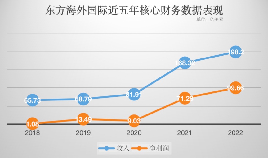 值得一提的是,暂且抛开眼前的困境不论,过去几年里东方海外国际刚经历了一轮狂飙突进的上升期。数据显示,2020-2022年,东方海外国际的收入从81.91亿美元增加至198.2亿美元,净利润更是从9.03亿美元劲增至99.66亿美元,涨幅十分惊人。