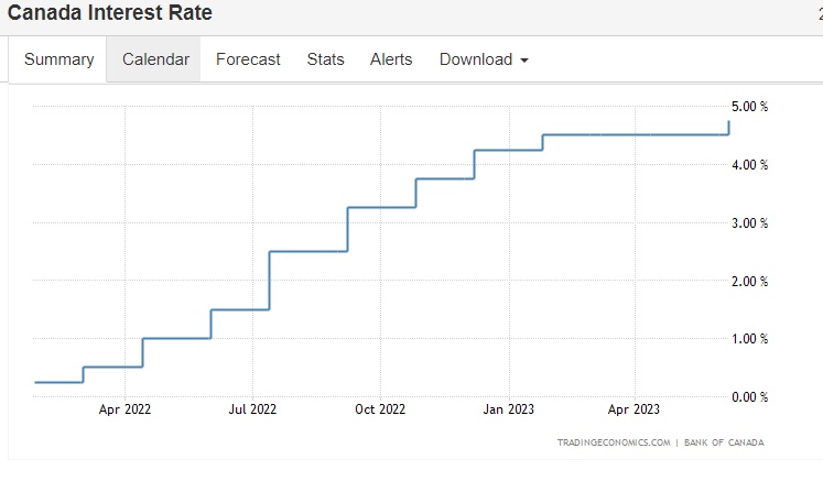在今年7月之前,加拿大今年以来仅加息了2次(1月与6月,幅度为25个基点),在3月与4月暂停加息。