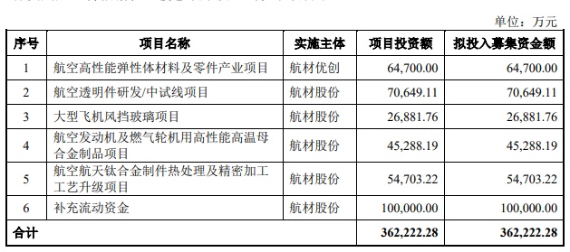 本次公开发行股票所募集的资金扣除发行费用后,航材股份将根据轻重缓急顺序投入到以下项目中: