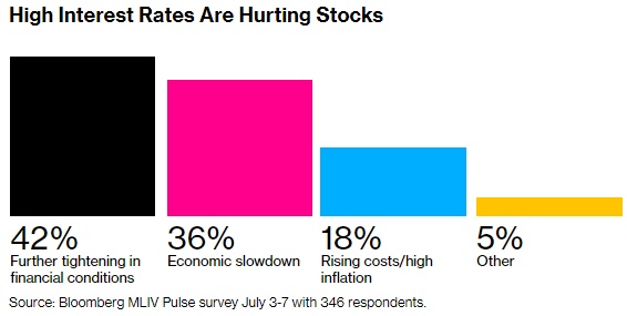 42%的受访者表示,财报季最大的负面影响将是金融环境进一步收紧的影响。上周五公布的就业数据显示,美联储7月将升息的押注仍很高,但6月薪资增长强于预期。