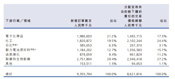 如前所述,森松国际主要向客户提供传统压力设备和模块化压力设备,并提供相关的增值服务。目前,森松国际的下游行业包括油气炼化、日化、化工新材料、制药(含生物制药和化学合成药)、动力电池原材料(含金属矿、锂电池原材料、中间化工原材料)和电子化学品(含光伏原材料和高纯度化学试剂的生产)等。