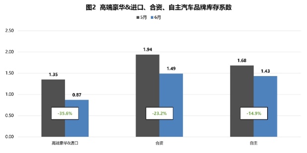 高端豪华&进口、合资、自主品牌库存系数下降