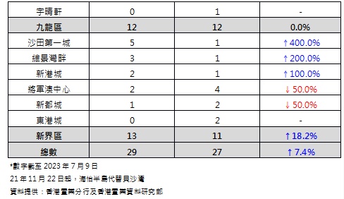 至于上周零成交屋苑数目共有7个,按周增加2个,佔20大屋苑比率增加至35%,当中包括海怡半岛、嘉亨湾、翔龙湾、维港湾、海逸豪园、宇晴轩及东港城。