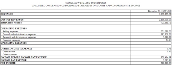 理想很美好,现实却很骨感。作为美妆行业的新面孔,六个喵的规模并不算太大:该公司在2022年内实现收入303.19万美元,净利润约29.29万美元。而在招股书中,公司并未提及收入和利润均来自于哪些细分业务,也无从知晓该公司的业务拓展具体情况。