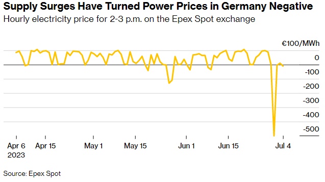 随着欧洲大陆日益依赖间歇性可再生能源,这一努力变得更加紧迫。如果太阳能发电厂上空乌云密布,或者大西洋刮来剧烈大风,电力供应可能会面临大幅波动。在德国,由于本月早些时候太阳能发电的激增量超过了周末正常的需求,电价在下午时间段一度跌至每兆瓦时负500欧元的创纪录水平。