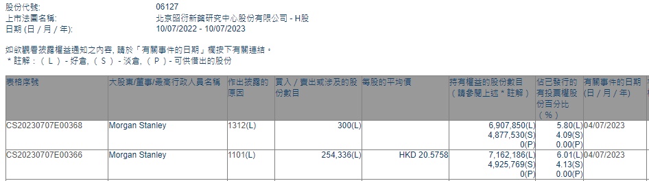 智通财经APP获悉,香港联交所最新资料显示,7月4日,大摩增持昭衍新药(06127)25.4336万股,每股作价20.5758港元,总金额约为523.32万港元。增持后最新持股数目约为716.22万股,最新持股比例为6.01%。
