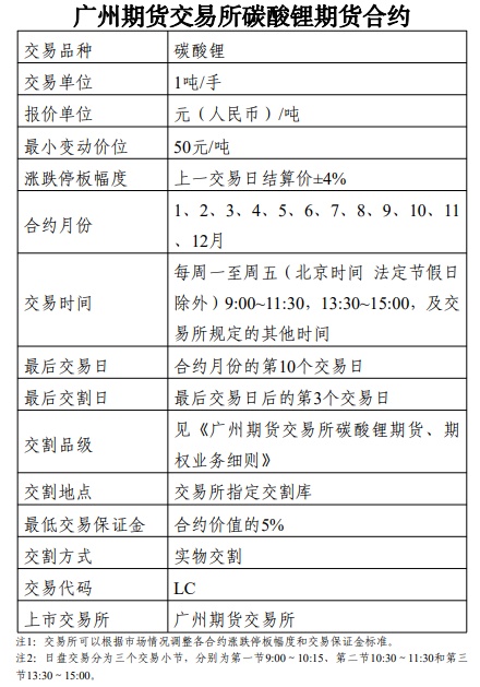 智通财经APP获悉,7月11日,广州期货交易所发布公告称,《广州期货交易所碳酸锂期货合约》《广州期货交易所碳酸锂期权合约》《广州期货交易所碳酸锂期货、期权业务细则》,已由广州期货交易所董事会审议通过,并报告中国证监会,现予以发布,自发布之日起实施。碳酸锂期货和碳酸锂期权合约上市交易时间及有关事项另行通知。