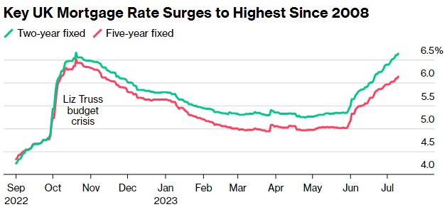 智通财经APP获悉,据Moneyfacts Group Plc的数据,周二,英国两年期固定住房贷款的平均利率升至6.66%,为2008年8月以来的最高水平。五年期抵押贷款固定利率的平均利率上升至6.17%,逐渐接近去年10月创下的14年高点,当时英国政府激进的财政预算计划令市场受到惊吓,利率飙升。这表明英国抵押贷款持有人面临着新的财务担忧。