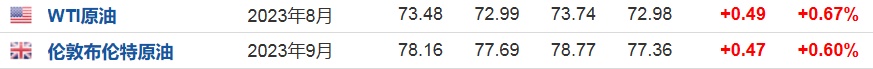 3.截至发稿,WTI原油涨0.67%,报73.48美元/桶。布伦特原油涨0.60%,报78.16美元/桶。