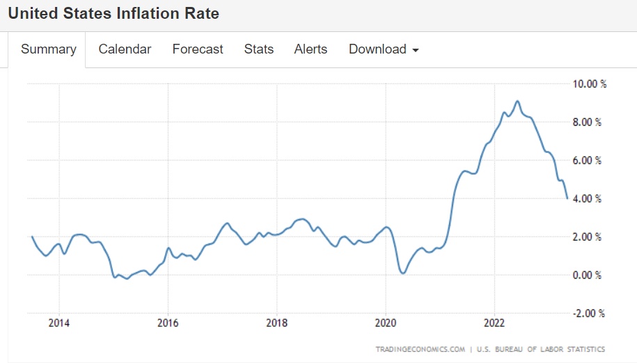 去年秋季,美国经济曾一度陷入温和衰退,但在强劲的就业市场和消费者支出持续的支撑下,经济基本保持了增长态势。自2022年6月达到9.1%的峰值以来,美国整体通胀率也一直呈持续下降趋势,连续12个月下降至目前的4%。