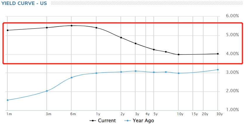 1个月、3个月以及6个月这些超短期美国国债的收益率同样大幅高于10年期美债收益率,反映出债市交易员们对于美国经济衰退的预期只增不减。